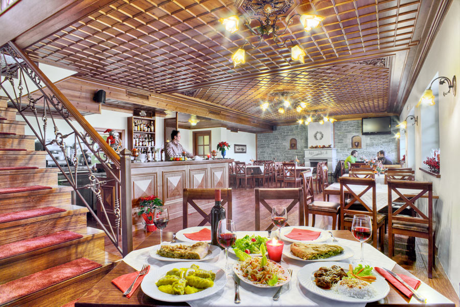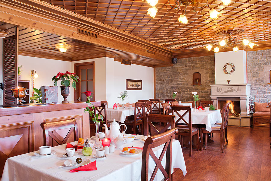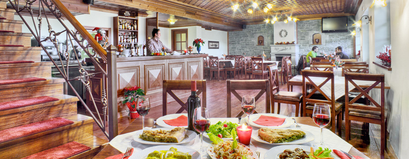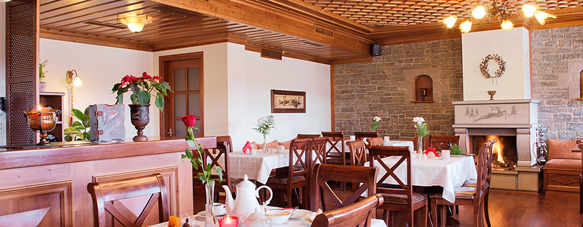 Το εστιατόριο " ΔΡΥΟΦΥΛΛΟ " καταλαμβάνει ξεχωριστή θέση στο συγκρότημά μας. Στεγάζεται στους δύο ορόφους του πρώτου κτιρίου του συγκροτήματος. Είναι 100 θέσεων, διαθέτει δύο πολυτελή σκαλιστά τζάκια, αναπαυτικά "μπάσια" και ανεμπόδιστη θέα προς τη χαράδρα του Βίκου. Όμως, αυτό που κάνει το εστιατόριό μας να ξεχωρίζει, είναι οι ξεχωριστές γεύσεις που μπορεί να σας προσφέρει. Χρησιμοποιώντας μόνο αγνά υλικά και βιολογικά προϊόντα παρασκευάζονται εδέσματα από ντόπιες παραδοσιακές συνταγές. Σας καλούμε, λοιπόν, να απολαύσετε κάθε πιάτο μας ως μείγμα παράδοσης και φαντασίας, όπως το αντιμετωπίζουμε κι εμείς!!! Βρισκόμαστε στο Ζαγόρι, μπορούμε όμως να σας ταξιδέψουμε σ΄ ένα απολαυστικό και γαστριμαργικό ταξίδι στη γεύση και την απόλαυση...